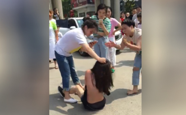 تتناقل مواقع التواصل الاجتماعي الصينية فيديو تظهر فيه سيدة نصف عارية تتعرض لمعاملة سيئة من فتيات أخريات في الشارع. لقد حاولت هذه الفتيات معاقبة تلك السيدة متهمات إياها بأنها عشيقة زوج إحداهن. وهذه