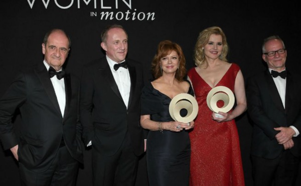 كان - سلمت الممثلتان الأمريكيتان أيقونتا عالم السينما جينا ديفيس وسوزان ساراندون جائزة "مواهب شابة" لبرنامج "نساء في الحراك" للمخرجات التونسية ليلى بوزيد والسورية غايا جيجي والإيرانية عايدة بناهندي.