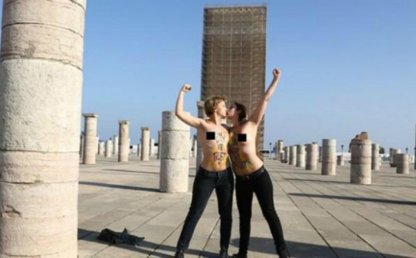 الرباط - قامت ناشطتان من منظمة عاريات الصدر "فيمن" الثلاثاء، بنزع ملابسهما العلوية داخل صومعة مسجد "حسان" التاريخية في الرباط حيث يوجد ضريحي الملكين الراحلين محمد الخامس والحسن الثاني، وذلك احتجاجا