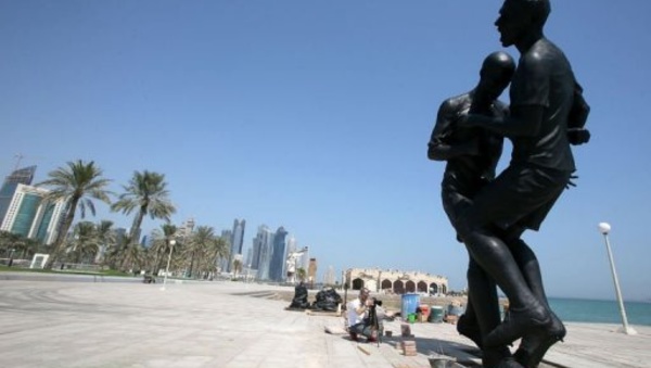 الدوحة - انتصبت على كورنيش الدوحة منحوتة فنية جديدة للفنان عادل عبد الصمد تحمل عنوان "نطحة رأس" وهي تحاكي ضرية الراس الشهيرة للاعب المنتخب الفرنسي السابق زين الدين زيدان، بمبادرة من إدارة برامج الفن