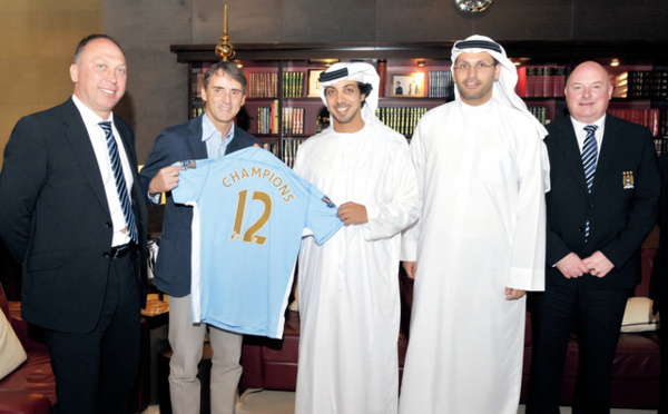 ابوظبي - استقبل الشيخ منصور بن زايد ال نهيان نائب رئيس مجلس الوزراء الاماراتي ومالك مانشستر سيتي اليوم الثلاثاء بعثة الفريق المتوج بلقب الدوري الانكليزي لكرة القدم والتي وصلت الى ابوظبي استعدادا