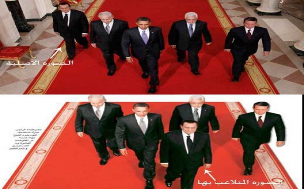 القاهرة - الهدهد - كشف مدونون على دراية بالاعيب ال "فوتو شوب " فضيحة نفاقية ارتكبتها " الاهرام "أكبر الصحف المصرية لاظهار الرئيس مبارك في مقدمة كوكبة من الرساء مع ان الحقيقة كما تكشفها الصورة الاصلية