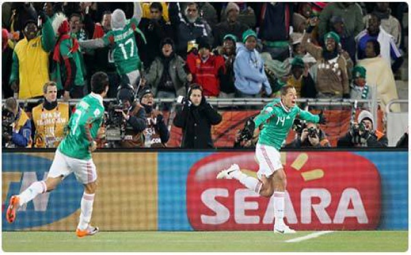 بولوكواني (جنوب أفريقيا) - أسقط المنتخب المكسيكي لكرة القدم نظيره الفرنسي بالضربة القاضية وحقق عليها فوزا تاريخيا 2/صفر اليوم الخميس على استاد "بيتر موكابا" بمدينة بولوكواني ضمن الجولة الثانية من