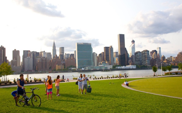 نيويورك - عندما يقوم ممارسو اليوجا بوضعية "كلب منكفئ على وجهه" ثم يوجهون أنظارهم لأعلى نحو بحيرة إيست ريفر التي تربط شمال نيويورك بجنوبها، تكون مكافأتهم مشاهدة خط الأفق فوق ضاحية مانهاتن. تبدو حينئذن