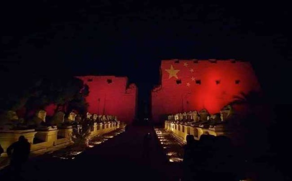 الأقصر (مصر) - شهدت معابد الكرنك الفرعونية بمدينة الأقصر، ومعبد فيلة الأثري بأسوان، جنوبي مصر، إضاءة واجهتهما الرئيسية ،مساء اليوم الأحد، بألوان ونجوم العلم الصيني، وذلك تعبيرا عن تضامن مصر مع