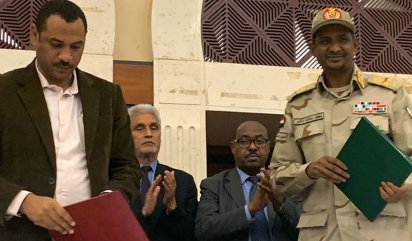 توصل المجلس العسكري الحاكم في السودان إلى اتفاق لتقاسم السلطة مع المعارضة ينهي شهورا من الاضطرابات التي تشهدها البلاد. ووقع الاتفاق في العاصمة الخرطوم بحضور وسطاء من الاتحاد الأفريقي بعد محادثات