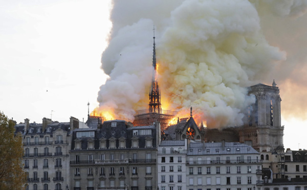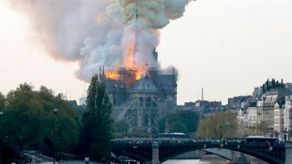 انهيار البرج التاريخي بكاتدرائية نوتردام في باريس بحريق