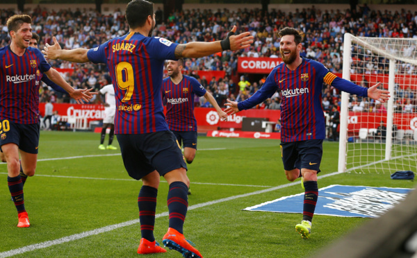 مدريد - سجل الأرجنتيني ليونيل ميسي ثلاثة أهداف (هاتريك) ليقود فريقه لانتزاع ثلاث نقاط ثمينة من مضيفه أشبيلية 4 / 2 خلال المباراة التي جمعتهما اليوم السبت في الجولة الخامسة والعشرين من الدوري الإسباني