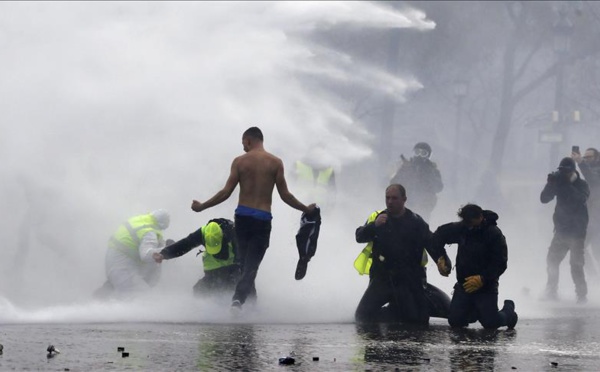 أصيب 10 أشخاص على الأقل، السبت، خلال مواجهات عنيفة بين الشرطة الفرنسية ومحتجي "السترات الصفراء" الغاضبين من رفع أسعار الوقود في باريس. ونقلت قناة "فرانس 24" المحلية عن شرطة باريس قولها، لقد "تمخض عن