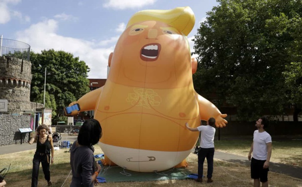 لندن - حمل المتظاهرون البريطانيون بالونا برتقاليًا بطول ستة أمتار على هيئة رضيع يشبه الرئيس الأمريكي دونالد ترامب، بالقرب من البرلمان البريطاني في وسط لندن اليوم الجمعة. وكتب منظمو الاحتجاج على