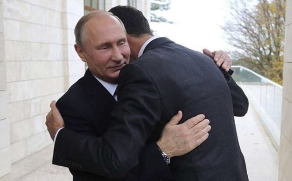 ظهور الرئيس الروسي #فلاديمير_بوتين، حاضناً معانقاً رئيس النظام السوري #بشار_الأسد، في صورة شهدت رواجاً شديداً على مختلف وسائل الإعلام ووسائل التواصل الاجتماعي، كان فرصة لتعليقات تراوحت بين السخرية من