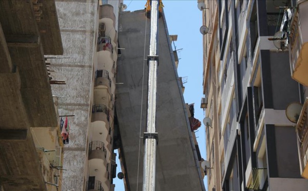 عمارة"الأزاريطة" المائلة.. انهيار غريب لبرج سكني بالاسكندرية
