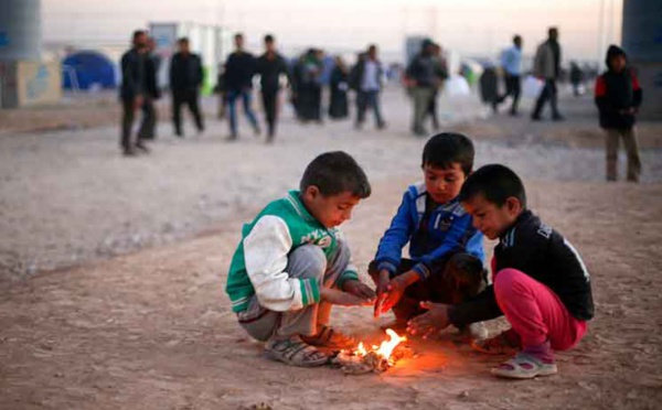 الموصل - إدوار غيير - في مخيم حسن شام للنازحين من معركة الموصل على بعد 30 كلم شرق المدينة، جلست الطفلة نورا (10 سنوات) للرسم في احدى الخيم مع أطفال آخرين مثلها ما زال هاجس الحرب يرافقهم رغم ابتعادهم