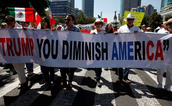 سيوداد خواريز (المكسيك) - تظاهر نحو 1500 مكسيكي يوم الجمعة ضد خطة الرئيس الأمريكي دونالد ترامب لبناء جدار على طول الحدود بين الولايات المتحدة والمكسيك، حيث قاموا بتشكيل سلسلة بشرية. وقال السيناتور