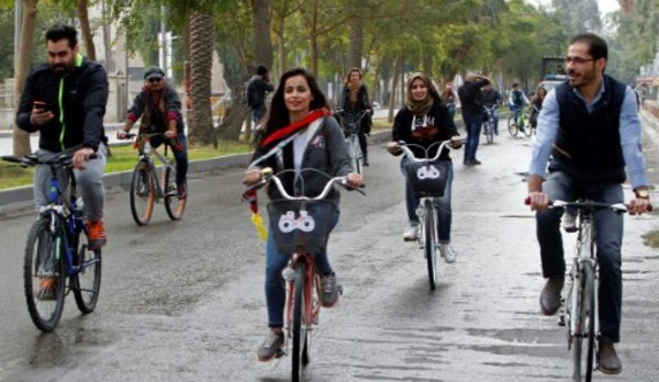 بغداد (أ ف ب) - جلست مارينا جبر (25 عاما) على دراجتها الحمراء تتلفت بثقة يمينا ويسارا بانتظار الانطلاق مع اخريات في جولة في شوارع بغداد، في تحد لقيود اجتماعية فرضت على نساء مدينة كانت في الماضي سباقة