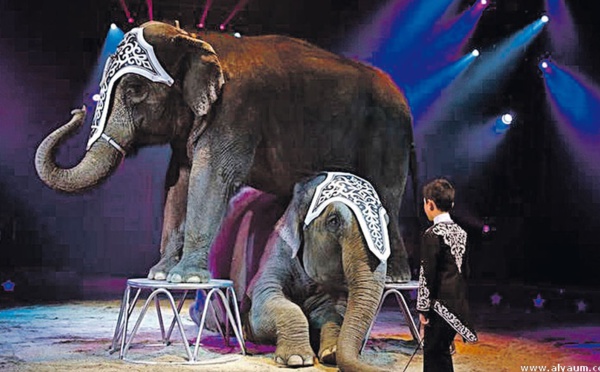لوس أنجليس - يقدم 11 فيلا آسيويا في أحدى أكبر فرق السيرك في الولايات المتحدة "رينجلينج بروس برانوم آند بيلي" العرض الأخير لهم اليوم الأحد قبل إحالتها إلى التقاعد قبل عامين من الموعد المقرر لذلك .