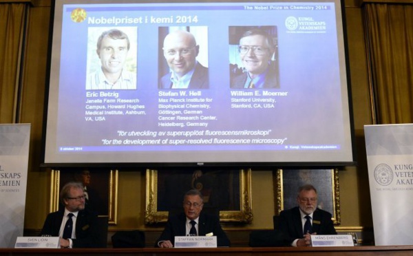 بروكسل - منحت جائزة نوبل للكيمياء للعام 2014 الأربعاء إلى الأمريكيين إريك بيتزيغ ووليام مورنر والألماني شتيفان هيل. وكوفئ الباحثون الثلاثة لتطويرهم الفحص المجهري بالغ الدقة. أعلنت الجهة المانحة