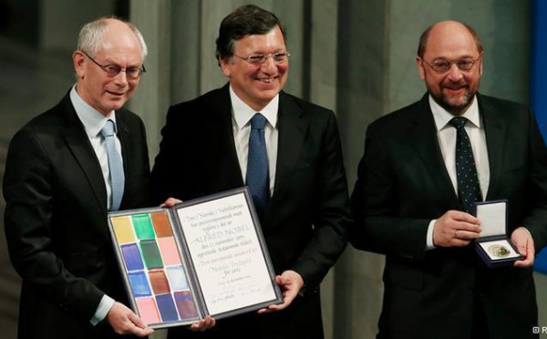 اوسلو - بيار هنري ديهيه - تسلم الاتحاد الاوروبي الغارق في اسوأ ازمة في تاريخه الاثنين جائزة نوبل للسلام تكريما لدوره في تحويل "قارة في حالة حرب الى قارة سلام"، فيما تحدث ممثلوه في هذه المناسبة عن