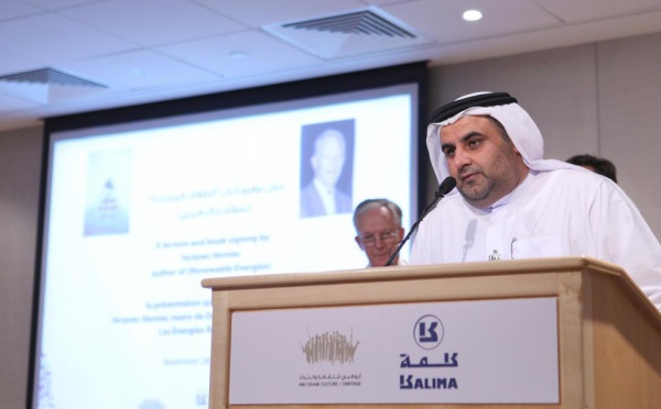 ابوظبي - أقام مشروع "كلمة" للترجمة التابع لهيئة أبوظبي للثقافة والتراث مساء أمس الاثنين في قاعة المعمورة في أبوظبي حفل توقيع النسخة العربية من كتاب "الطاقات المتجددة" للمؤلف الفرنسي جاك فيرنيي والذي