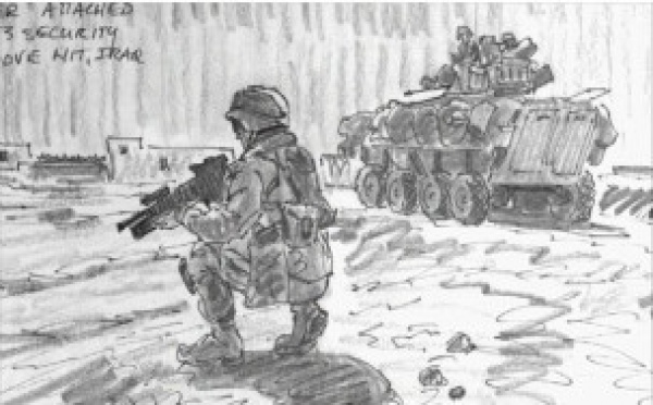رسام أمريكي وظيفته رسم قوات بلاده في العراق وافغانستان وهي تؤدي مهامها