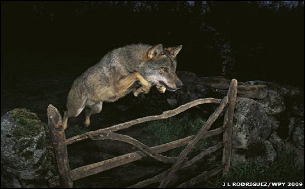 لندن - بي بي سي - فازت صورة لذئب يثب على فريسته ليلا بالجائزة الاولى في مسابقة فيوليا المرموقة لصور الحياة البرية لهذه السنة. والتقط الصورة خوسيه لويس رودريغيس الذي خطط لها بصبر على مدى عدة سنوات.