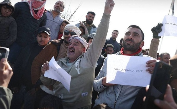 شهدت مدينة تل أبيض في ريف الرقة الشمالي، اليوم السبت 28 من شباط، مظاهرة شعبية وإضرابًا عامًا احتجاجًا على أنباء عن زيارة وشيكة لوفد أمني يضم قيادات من “قوات سوريا الديمقراطية” (قسد)، برفقة عناصر من