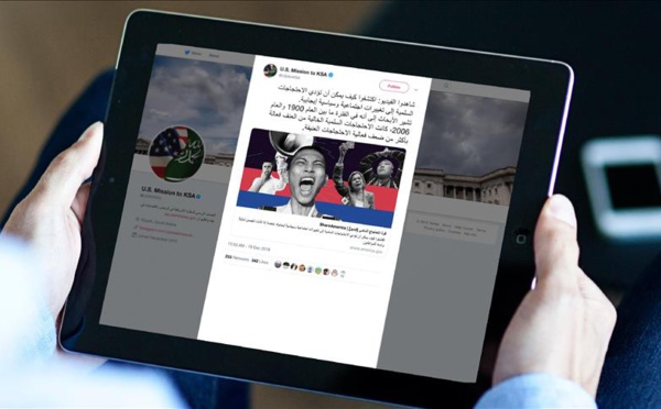 أثارت تغريدة لسفارة وقنصليات واشنطن في الرياض وجدة والظهران، تدعو لمشاهدة النتائج الإيجابية للاحتجاجات، إلى اتهامات سعودية، بالتحريض على التظاهر والفوضى. وباللغة العربية والإنجليزية، غرد الحساب