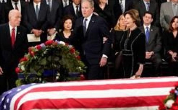 واشنطن – وصل نعش مغطى بالعلم الأمريكي يحمل جثمان الرئيس الأمريكي الأسبق، جورج إتش دبليو بوش (الأب)، يوم الاثنين، إلى واشنطن قادما من تكساس، حيث من المقرر أن تقام مراسم جنازة رسمية يوم الأربعاء من