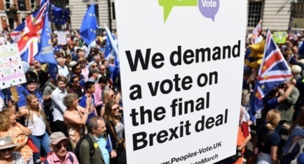 لندن - خرج اكثر من نصف مليون من المتظاهرين في مسيرة وسط لندن ، السبت، للانضمام إلى مشرعين من جميع الاطياف السياسية المختلفة ، في الدعوة إلى إجراء استفتاء جديد بشأن خروج بريطانيا من الاتحاد الاوروبي.