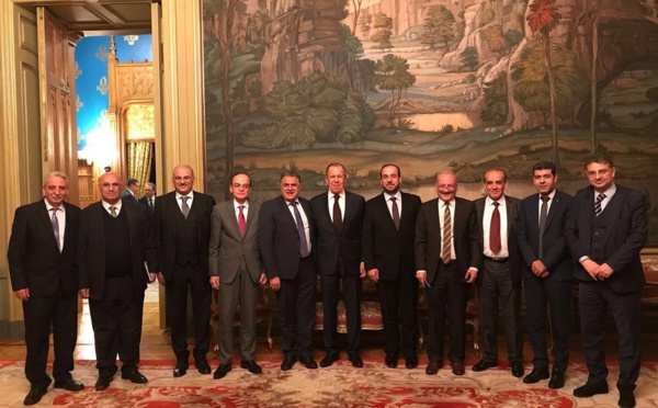 أثارت صورة لـ "وفد الرياض 2" الذي يقوم بزيارة رسمية إلى موسكو، موجة انتقادات واسعة بين السوريين على مواقع التواصل الاجتماعي.   وانتشرت صورة جماعية لأعضاء "وفد الرياض 2" مع وزير الخارجية الروسي