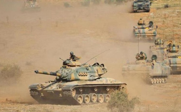 حلب (سورية) - دخل رتل عسكري كبير يضم دبابات وآليات عسكرية تركية إلى الأراضي السورية ،عبر معبر اعزاز في ريف حلب الشمالي وسط تقدم مسلحي الجيش السوري الحر المعارض ،المدعوم عسكريا من تركيا،وسيطرتهم على
