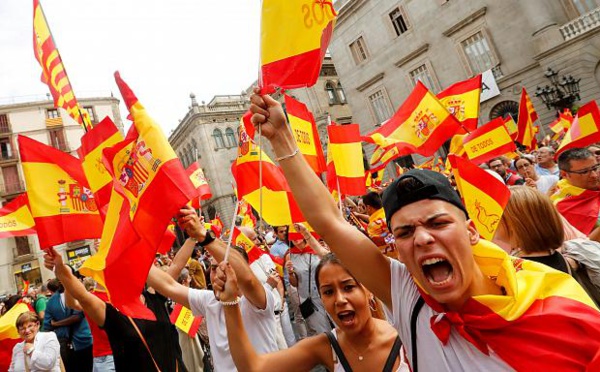 مدريد - نظم آلاف المواطنين اليوم السبت مظاهرات بميدان"بلازا كولون"بالعاصمةالإسبانية مدريد منادين بوحدة البلاد. وحمل المتظاهرون أعلام دولتهم، بينما اتشح بعضهم بها، مرددين شعارات "تحيا إسبانيا" و"تحيا