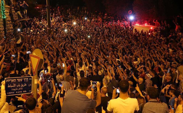 احتفل فلسطينيون في مدينة القدس المحتلة، اليوم الجمعة، بإعادة فتح بوابات المسجد الأقصى، بعد إغلاقها من الشرطة الإسرائيلية، أمس، في أعقاب توتر شديد شهدته ساحات المسجد ومحيطه. وأدى عشرات الألاف من
