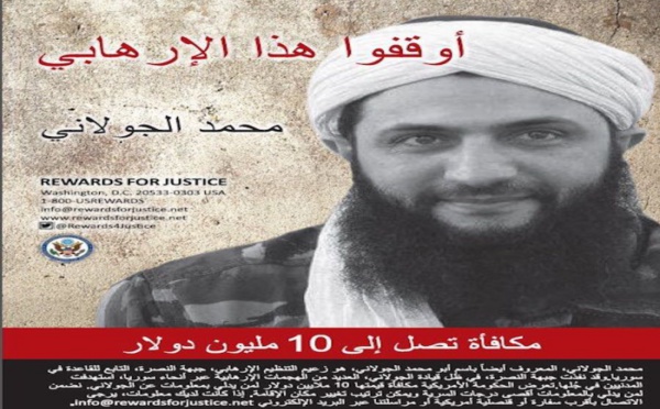 أمريكا تخصص جائزة عشرة ملايين لمن يدلي بمعلومات عن الجولاني