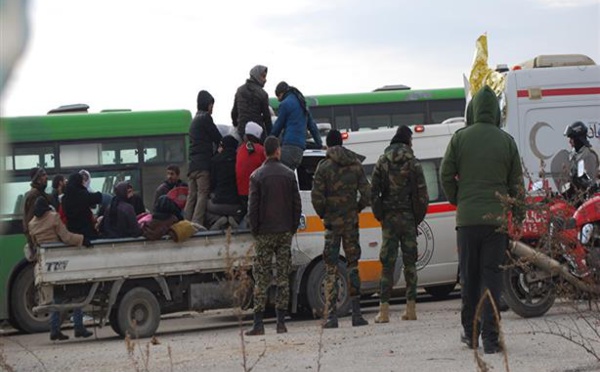 بدء اول عملية اجلاء لمقاتلين معارضين من حي برزة في دمشق