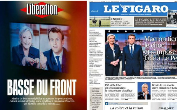أجمعت الصحف الفرنسية الصادرة على أن المناظرة التلفزيونية التي جمعت مساء الأربعاء بين مرشحي الانتخابات الرئاسية مارين لوبان وإيمانويل ماكرون اتسمت بعنف غير مسبوق. وذهبت بعض الصحف إلى اعتبار أنه " من