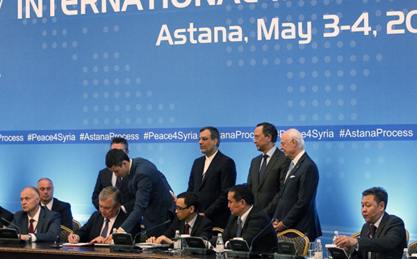 ينص الاتفاق الذي وقعته روسيا وتركيا وإيران أمس الخميس في أستانة عاصمة كازاخستان على إقامة "مناطق تخفيف التصعيد" في سوريا، وذلك في المحافظات الثماني التي توجد فيها الفصائل المعارضة المسلحة من أصل 14