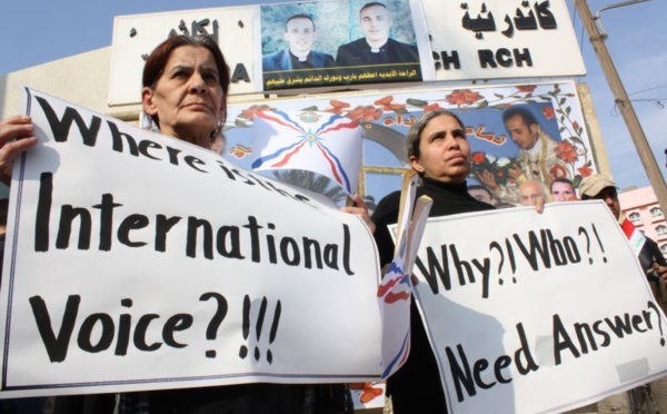 بغداد - تجمع العشرات من العراقيين المسلمين الخميس امام كنيسة سيدة النجاة في بغداد التي تعرضت قبل ثلاثة اعوام لهجوم شنه متمردون اسلاميون واسفر عن مقتل 44 شخصا وكاهنين، مناشدين مواطنيهم المسيحيين