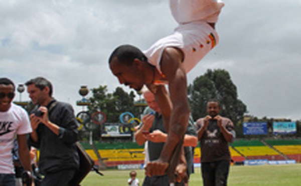 أديس أبابا - كارولا فرنتزين - عوض الله تاميرو زيجييه عن هزال وضعف ساقيه بساعدين قويين، فلم يستسلم لإعاقته، وبدأ يتحرك بأسلوب أنيق للأمام وللخلف كما لو كان يقوم بأداء رقصة، وفجأة يتشقلب في الهواء رأسا