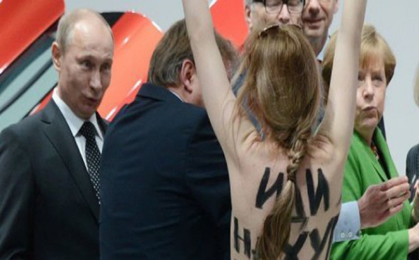 هانوفر (ألمانيا) - ماتيلد ريتشر - تعرض الرئيس الروسي فلاديمير بوتين للتأنيب من متظاهرات عاريات الصدور ولانتقادات المستشارة الالمانية انغيلا ميركل حول مسألة المنظمات غير الحكومية في روسيا، خلال زيارة