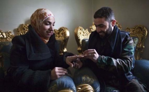 حلب - انطونيو بامبلييغا - التقى يوسف وغادة قبل سبعة اشهر على صفحة على موقع فيسبوك معادية لنظام الرئيس السوري بشار الاسد وحين قررا لاحقا ان يتزوجا اضطرا الى عقد قرانهما امام احد قادة جبهة النصرة لتوقف