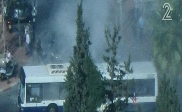 القدس - فيليب اغريه - اوقع تفجير في حافلة في تل ابيب الاربعاء عشرة جرحى على الاقل بحسب اجهزة الاسعاف فيما واصلت وزيرة الخارجية الاميركية هيلاري كلينتون والامين العام للامم المتحدة بان كي مون