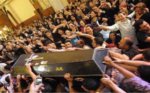 القاهرة - جيلان زيان - في اجواء حزينة ومهيبة، شيع الاف الاقباط الثلاثاء البابا شنودة الثالث بطريرك الاقباط الارثوذكس في مقر كاتدرائية القديس مرقس في القاهرة التي كانت مكتظة بالمواطنين الاقباط وبرجال