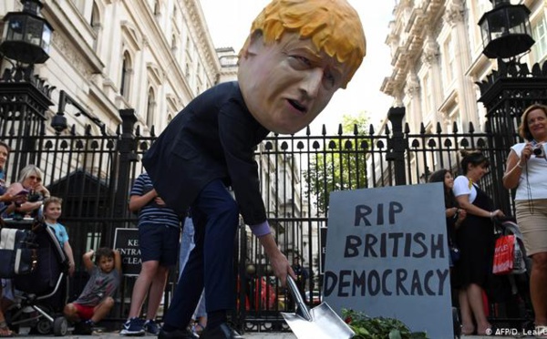، أثار جونسون حالة من الغضب باعلانه تعليق البرلمان لخمسة اسابيع وخسر على إثرها زعيمة حزبه في اسكتلندا ووقع أكثر من مليون شخصة عريضة تدين قراره. فيما وصقت أصوات سياسية أخرى المظاهرات التي خرجت ضد